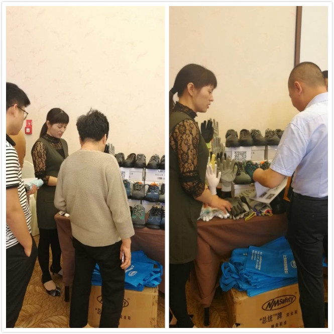 在劳保用品交流会现场,纳美旗下“NMSafety”手套及“总统”安全鞋吸引了众多参会代表的注意力,大家纷纷在展台驻足交流。