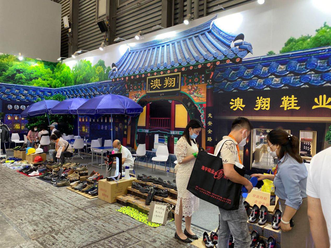 百届展会让所有参展商都磨拳擦掌,一展风采.其中上海澳翔鞋业紧跟中央号召,在会场里做起了”地摊经济”,吸引了众人的目光。