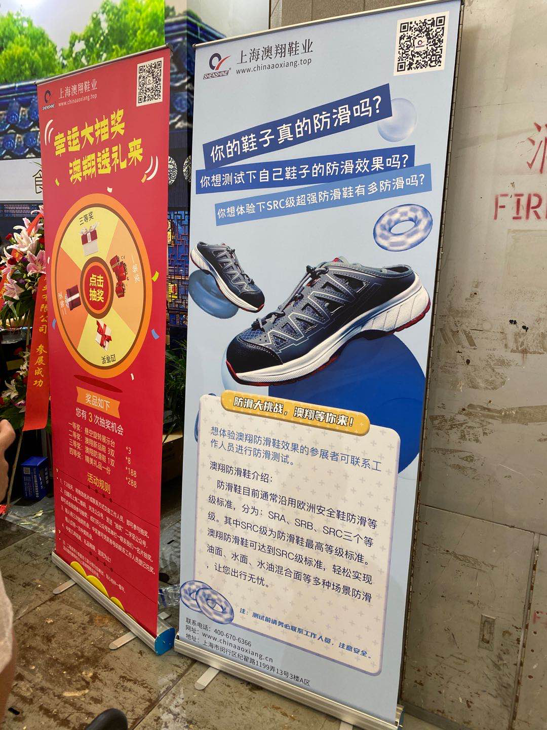 上海澳翔拥有多个工业防护品牌,安全鞋行销全国,产品更远销东南亚,日本,欧美等国.这次的展示方式,拉近了消费者和经销商的距离,不单单只是展示,而是可以让消费者亲身体验安全鞋的舒适度和防滑效果。