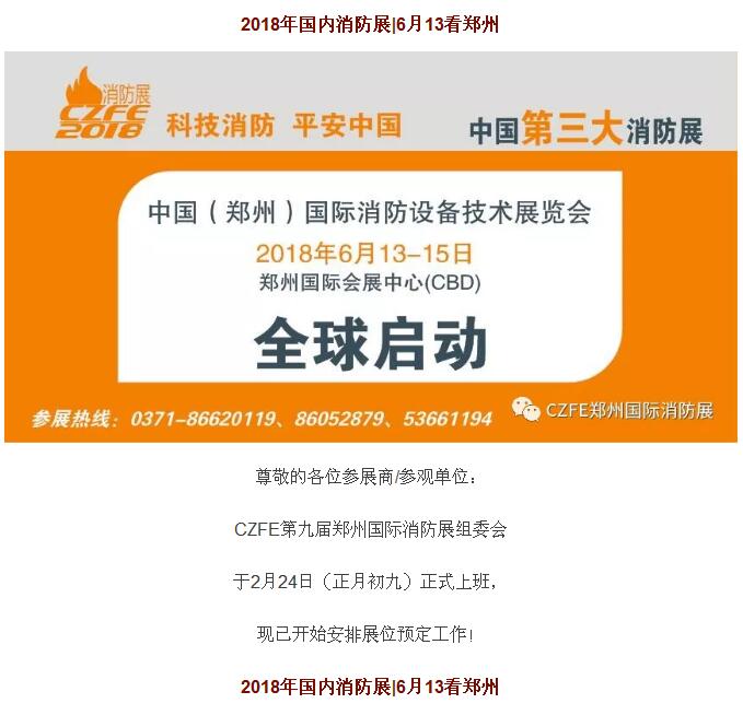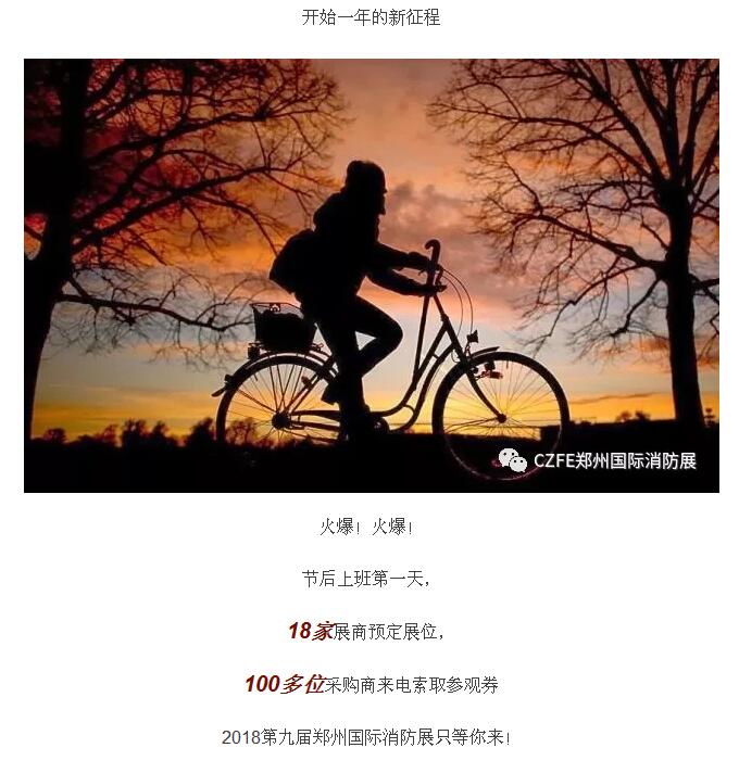 火爆!火爆!节后上班第一天,18家展商预定展位,100多位采购商索取参观券|2018第九届郑州国际消防展只等你来!
