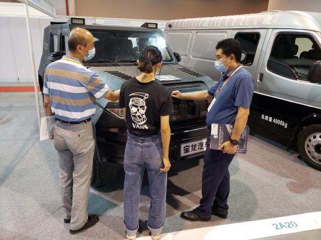 宝龙汽车的防弹车,采用安全防护解决方案,如防弹玻璃、防扎轮胎技术、高性能轻质防护材料技术、防爆胎安全装备技术等高科技,展会现场亦吸引众多关注。