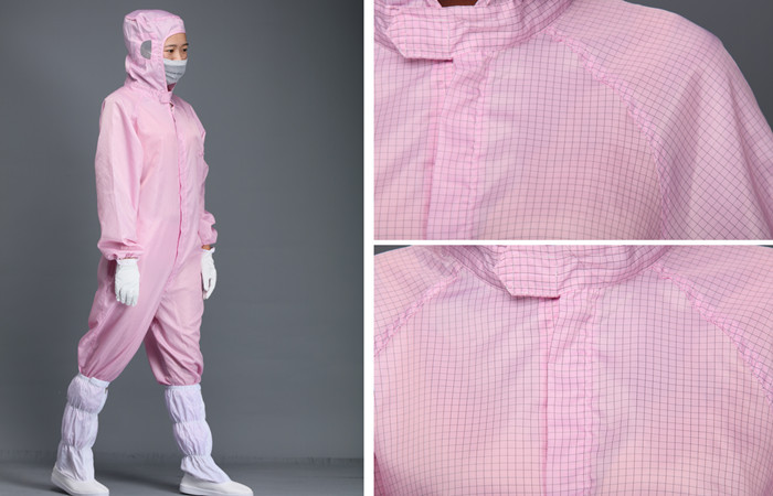 当今的防静电工作服,应当采用专用的防静电洁净面料制作。这种面料采用专门的涤纶长丝,经向或纬向大致均匀地嵌织导电纤维,具有持久高效的防静电性能和防尘功能。这种防静电服还具有质地薄滑、织纹清晰等特点。
