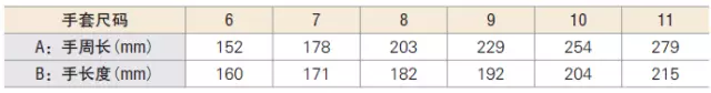③ 手套尺码的选择手套大小的选择取决于手围(A) 和手长(B)的测量,测量方法如下图。