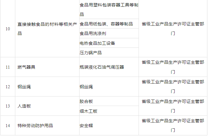 一、调整工业产品生产许可证管理目录对瓶装液化石油气调压器、安全帽、钢丝绳、冷轧带肋钢筋、胶合板、细木工板等6种产品实施工业产品生产许可证管理。实施工业产品生产许可证管理的产品由10类21种调整为14类27种(见附件)。