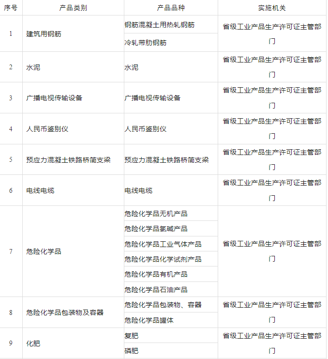 实施工业产品生产许可证管理的产品目录