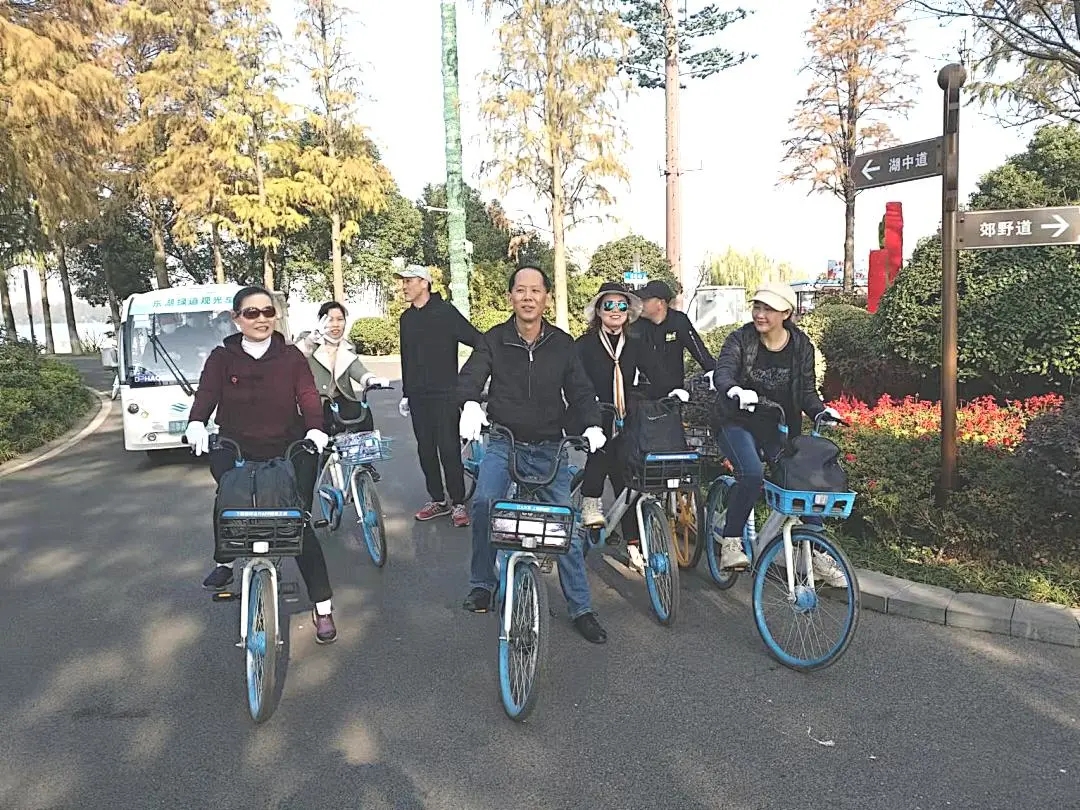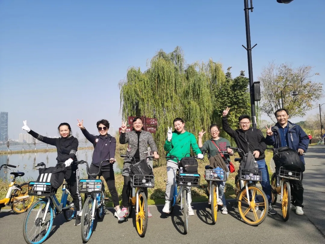 此次健康行活动路线为:自梨园广场的湖光序曲出发,沿东湖绿道,途径:长堤衫影、湖心归沐、鹅咏阳春、曲港听荷、鹄梦回塘、叶家湾、白马洲头、华侨城公园北等地,最终回到集合点,骑行全程约18公里,步行选其中的5公里。上午9点30分,大家到达位于梨园广场的东湖绿道入口,集体合影留念。健康行活动由公司总经理张金敏发令启动,大家沿着风光秀美、空气清新的东湖边前行,职工们一改平日里紧张、繁重的工作节奏,全程精神昂扬,一路欢声笑语。