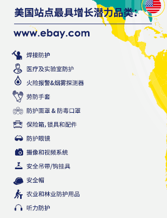 在内陆地区,湖北省的医用防护耗材产业表现抢眼。这些产业聚集区恰与跨境电商热点地区高度重合:根据eBay平台数据显示,在2016年各省跨境电商出口额排名中,广东、浙江、上海、北京、江苏为前五强,山东、湖北分列第八及第九位。以下为各大站点最具增长潜力劳防用品: